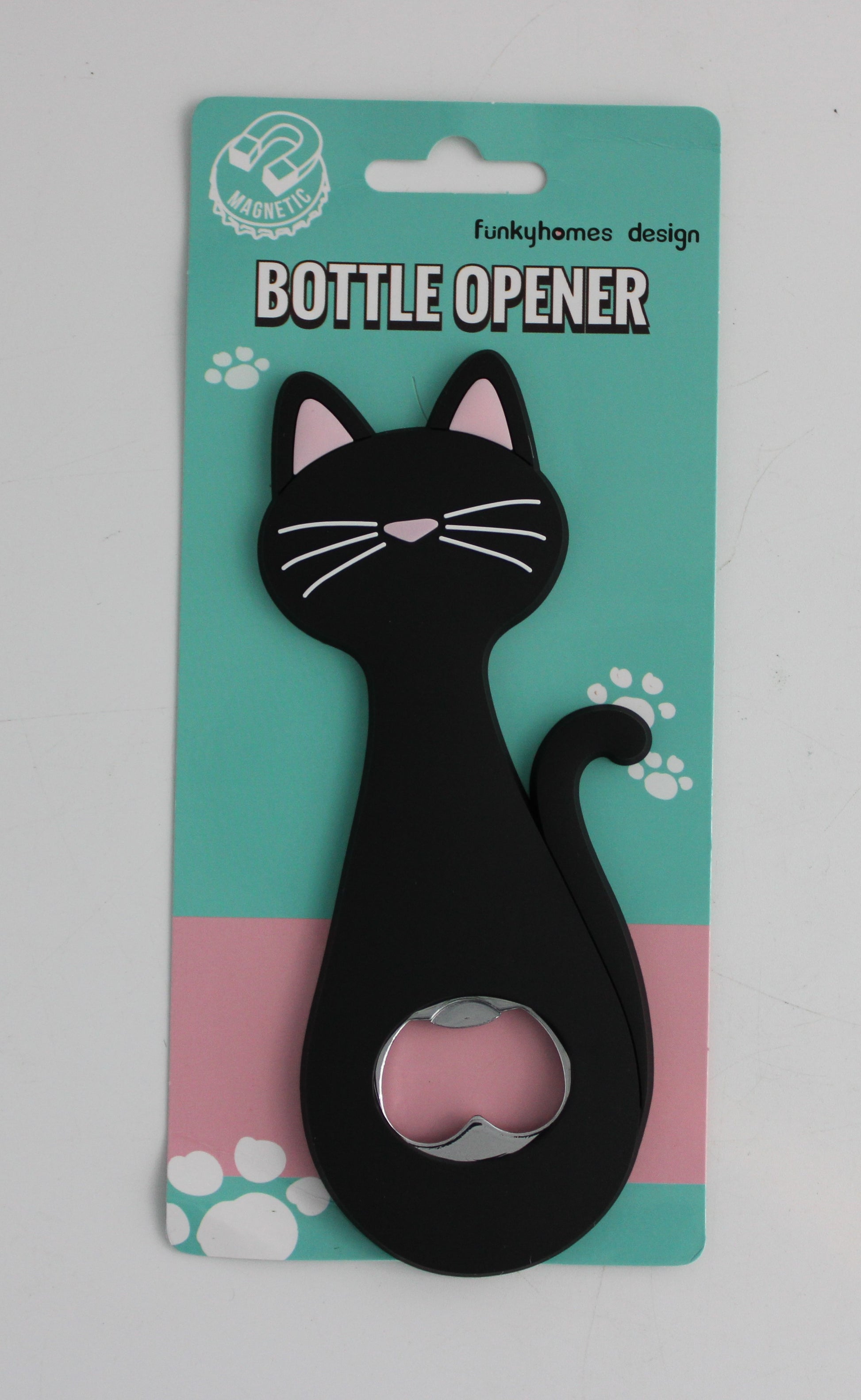 Utilise the magnetic back of this sleek black cat bottle opener to conveniently keep it on your fridge, making it easily accessible whenever needed.