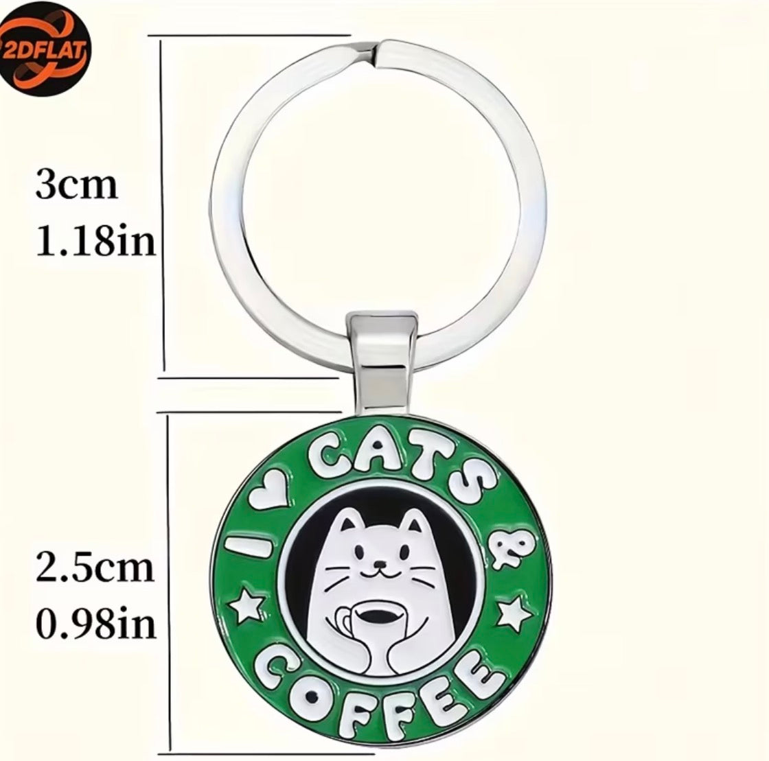2Dflat Adorable I Love Cats & Coffee Keyring