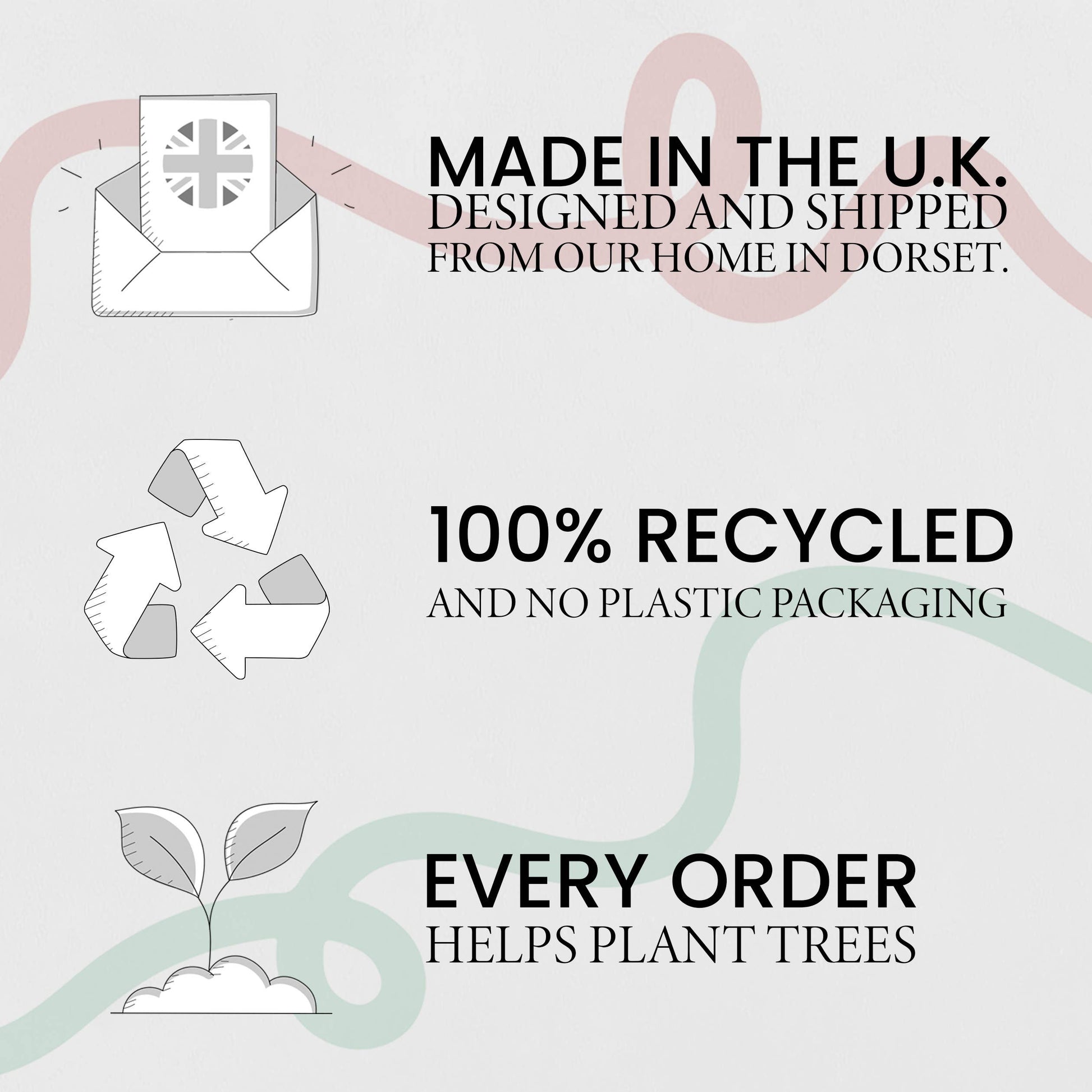 100% recycled, 300gsm matte card that tells a compelling eco story and every purchase supports reforestation via Sprout and Eden projects.