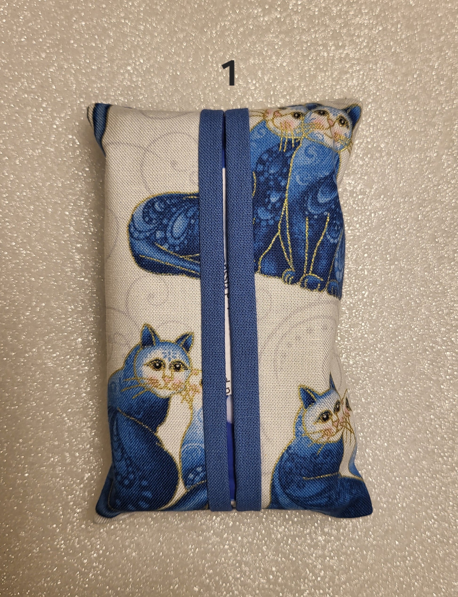Pocket Tissue Holder with Blue Cat Design