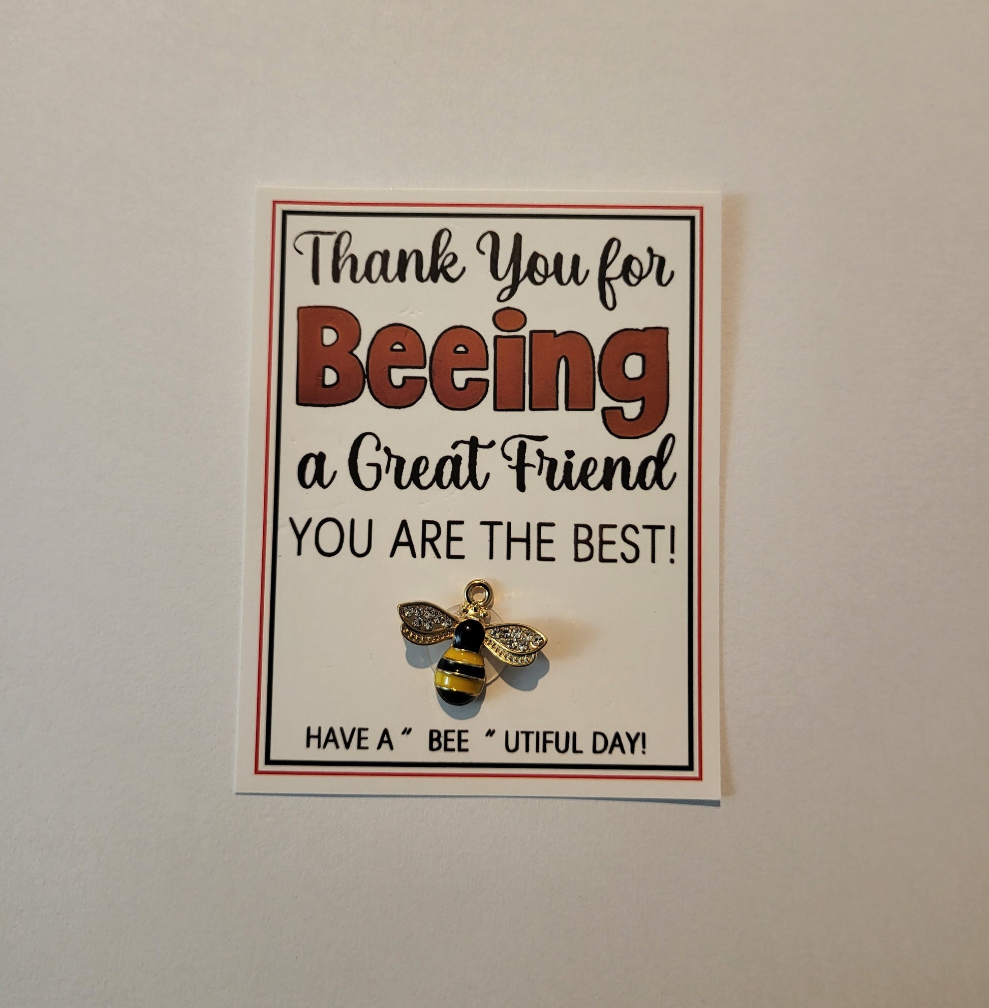 Remind someone that they are the best and wish them a "bee" utiful day with this small greeting card and charm.